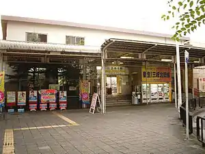 Nishi-Kuwana Station (西桑名駅, Nishi-Kuwana-eki) is a passenger railway station located in the city of Kuwana, Mie Prefecture, Japan, operated by the private railway operator Sangi Railway. The station is immediately adjacent to Kuwana Station, which services the Kansai Main Line, Kintetsu Nagoya Line and the Yōrō Line. The station is used primarily by morning and evening commuters to school and work. Many passengers proceed on to Nagoya and Yokkaichi via Kintetsu and JR at Kuwana Station.