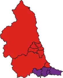 The constituency corresponded to the North East England region of the United Kingdom, comprising the ceremonial counties of Northumberland, Tyne and Wear, County Durham and parts of North Yorkshire.