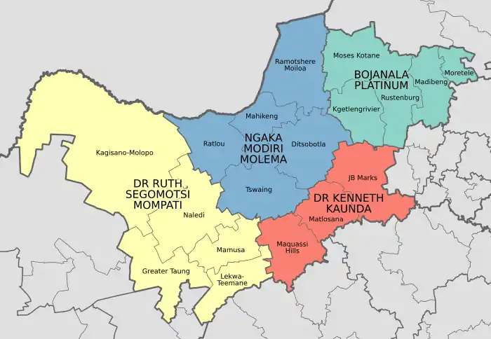 Dr Ruth Segomotsi Mompati DistrictNaledi, Mamusa, Greater Taung, Kagisano-Molopo, Lekwa-Teemane