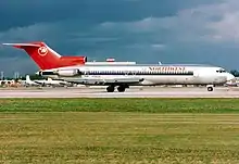 The Boeing 727-251, operated by Northwest Airlines, took off from Miami at 08:15 EST on the morning of January 4, 1990. About an hour later, at approximately 09:10 EST, the pilots reported hearing a loud bang towards the rear of the aircraft.[2] The 14-year-old jet continued to fly normally, and the crew, not knowing that an engine had fallen off,[3] flew for almost 50 minutes before carrying out a safe emergency landing at Tampa International Airport at 09:58 EST.[4] The engine, a Pratt & Whitney JT8D-15, was found a day later in a field near Madison, Florida.[4]