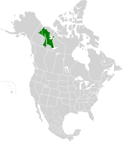 Mammals of the area include woodland caribou (Rangifer tarandus), moose (Alces alces), bison (Bison bison), wolf (Canis lupus), black bear (Ursus americanus), marten (Martes americana), lynx (Lynx canadensis), and Arctic ground squirrel (Urocitellus parryii).[4]