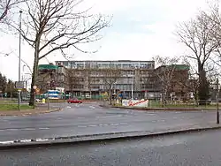 The hospital was commissioned by the North West Metropolitan Regional Hospital Board in the late 1960s, designed by the British architect John Weeks and built by Trollope & Colls.[5] The design of the hospital was largely inspired by British obsolescence studies, in which a loose-jointed medical complex was created with flexibility to withstand obsolescence's unpredictable effects.[6] With only a fixed internal street system, the architects referred to the hospital as "an indeterminate architecture" with "no final plan" – free to grow and change over time.[7] It was opened by the Queen on 10 October 1970.[8] It takes its name from Northwick Park, which is next to it.[9]