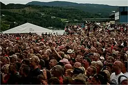 In 1988, thirteen local blues enthusiasts gave their personal guarantee to the bank and were granted a cash credit, and the first Notodden Blues Festival took place. The credit from the bank turned out to be unnecessary, and the festival soon became one of Norway's most popular music festivals.[1] Today, the Notodden Blues Festival is the largest "pure" blues festival in Scandinavia,[1] expanding from 2,000 sold tickets (NOK 200,000 gross ticket sales) to 24,500 sold tickets (NOK 12,000,000 gross ticket sales) in 17 years.