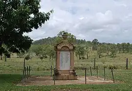 The Colinton War Memorial was unveiled outside the School of Arts on 18 January 1917 by Member of the Queensland Legislative Assembly for Stanley, Henry Plantagenet Somerset.[14][15][16] The 1974 flood of the Brisbane River did not affect the Colinton War Memorial, but resulted in changes to the highway. As part of these changes, the Esk Shire Council relocated the war memorial to its current position in the road reserve at the corner of Emu Creek Road and the D'Aguilar Highway.[17]