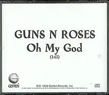 "Oh My God" is a song by Guns N' Roses released in 1999 on the soundtrack to the film End of Days. The song was sent to radio stations in November 1999 as a promo for the soundtrack and the band. Despite being the band's first recorded release in almost five years, it was never issued as a stand-alone single for public retail. The song was written as the band was recording music for Chinese Democracy.