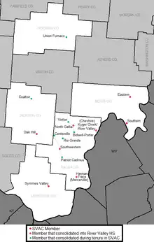 • Willow Wood Symmes Valley Vikings (1971–77, to Ohio Valley Conference, 1984–91, to Southern Ohio Conference)