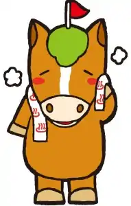 Oketo's mascot is Okebamba-kun (おけばんばくん). He is a gentle nature-loving horse. He lives in the outskirts of Oketo. He is laid-back yet very sloppy. He is used to be a skilled Ningenbanba (Human Horse) competitor but retired as a result of many loses. He became a park golfer instead. When he is on his break, he goes to Katsuyama Onsen Yuyu while having a nice meal. He always bring his personal oke (a traditional bucket). His mane resembles that of the Oketo Park Golf Course.[2]