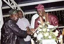 Ọlagunsoye Oyinlọla (born 3 February 1951) is a retired Nigerian general, he became governor of Osun State, Nigeria in May 2003, and was reelected in 2007. He was a member of the ruling Peoples Democratic Party (PDP).[1] On 26 November 2010 a court of appeals nullified his election.[2] He later defected to the APC shortly before the 2014 Osun State governorship election. He was former military administrator of Lagos State.