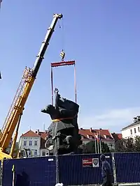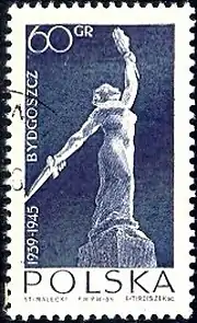 In January 1945, in the first days after the liberation of Bydgoszcz, the monument to Frederick the Great was dismantled and melted away.[14] On 1 May 1948 the fountain-well was reinstalled in front of the still ruined Municipal library,[15] while between 1953 and 1956, parts of the eastern frontage were rebuilt. However, the new authorities did not proceed to the reconstruction of the western frontage, owing to the presence of the Jesuit church which did not fit into the new political line.[22] In 1947, markets on the place were finally liquidated, leaving the area for cultural events and demonstrations.
