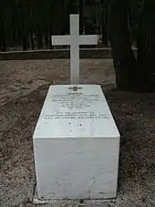 Despite republicanism in Greece, Olga was still held in high esteem and the republican government in Athens offered to pay for her funeral and repatriate her remains to Greece. Nonetheless, her children declined the offer, preferring to bury her in Italy beside her son, Constantine I, whose body Greece had refused to accept.[85] Her funeral was held on 22 June 1926 at the Orthodox Church in Rome and the next day she was laid to rest in the crypt of the Russian Church in Florence.[86][87] After the restoration of the Greek monarchy in 1935 she was re-interred at Tatoi on 17 November 1936.[88]