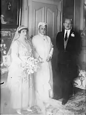 Unlike her children and grandchildren, Olga was given a pension by the government of the Second Hellenic Republic, but she maintained so many of the faithful old servants who had fled Greece with her that she was usually left with no more than 20 pounds sterling per month (worth about £1,200 in 2021 prices[81]) to meet her own expenses.[67] She could, however, count on the support of her family, scattered throughout Western Europe. In the United Kingdom, she shared her time between Spencer House, London, the residence of her youngest son, Prince Christopher; Regent's Park, where her daughter, Grand Duchess Marie, rented a mansion; Sandringham House, the home of her sister-in-law, Queen Alexandra; and Windsor Castle and Buckingham Palace, where her nephew, King George V, lent apartments.[82]