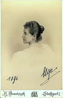 Olga of Württemberg (German: Herzogin Olga Alexandrine Marie von Württemberg; 1 March 1876 21 October 1932) was a daughter of Duke Eugen of Württemberg and Grand Duchess Vera Constantinovna of Russia. She married Prince Maximilian of Schaumburg-Lippe.[1]