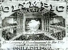 In 1873 it was turned into a theatre by J. H. Johnson & Co., and opened October 21st, under the name of the Olympic Theater.[2]:980