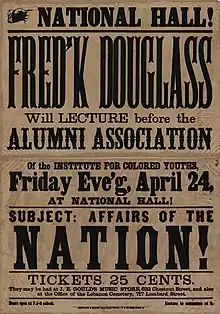 Poster announcing a lecture of Frederick Douglass in National Hall, 1863
