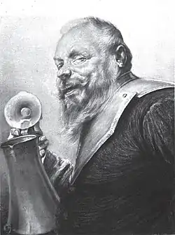 After meeting another character of the Trilogy, Jan Skrzetuski, Zagłoba, until now living a meaningless life of a petty noble, trying to survive by exploiting the good faith of others, becomes drawn into the company of hero-like personas, and slowly changes, to become worthy of their trust and friendship.[1][2] Together with them, Zagłoba engages in various adventures, fighting for the Polish–Lithuanian Commonwealth, and seeking adventures and glory.[3] During a feast, in a rather drunken state, he was the first to call prince Janusz Radziwiłł a traitor.[4] Eventually he becomes a widely known person, treated with respect by powerful magnates and offering counsel to the king.[1] He was balding and half-blind, known for his love of drinking and story-telling (usually glorifying his own exploits), tendency to poke fun at everyone and everything, later also renowned as a cunning tactician.[4]