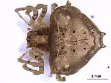 - ↑ Scharff, N.; Coddington, J.A.; Blackledge, Todd A.; Agnarsson, Ingi; Framenau, Volker W.; Szűts, Tamás; Hayashii, Cheryl Y. & Dimitrov, Dimitar (2020). "Phylogeny of the orb‐weaving spider family Araneidae (Araneae: Araneoidea)". Cladistics. 36 (1): 1–21. doi:10.1111/cla.12382. hdl:1956/22200. PMID 34618955. S2CID 149824795.