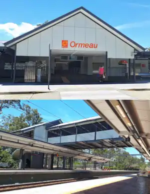 Ormeau railway station is a railway station located on the Gold Coast line in Queensland, Australia. Despite the name, it serves the Gold Coast suburb of Pimpama.
