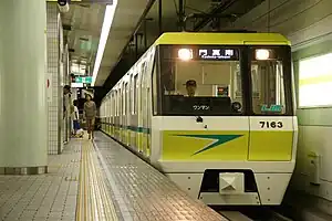 ![]() Osaka Municipal Subway 70 series in revised livery at Kadoma-minami Station, March 2012 | |