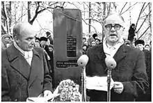 Parland to the right speaking at the unveiling of the memorial for Edith Södergran in 1960.