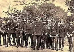 General Brière de l'Isle and his staff. De Négrier (with hand on chest) and Herbinger (clasping cane in both hands) are in the front row