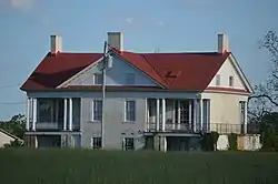 Otterburn is a Palladian-influenced Greek Revival plantation house near Bedford in Bedford County, Virginia. The hilltop house was first built in 1828 for Benjamin A. McDonald (1797-1871) and his wife, the former Sally Camm of Lynchburg, and overlooks the Little Otter Creek watershed. Benjamin A. McDonald, a prominent local Whig educated in Scotland, was appointed a local justice of the peace in 1832 and won election as Bedford County's first presiding justice in 1852. Re-elected twice, he served in the county's highest office from 1852 through 1864. His associated plantation in 1825 was 1,651-acre (668 ha), and included a gristmill, sawmill and dependent structures, mostly operated by enslaved labor (more than 20 slaves in the 1820s and 1830s, more than 30 slaves in 1840). At its largest, the associated plantation encompassed about 2,800-acre (1,100 ha) acres, but in modern times includes fewer than 16-acre (6.5 ha) acres. Fire gutted the original house in 1841, and it was reconstructed in the Greek Revival style by 1843, with an unusual transverse hall plan, facade that makes the 2+1⁄2-story structure look only 1+1⁄2 stories, and the addition of a loggia, cross-gable roof with a wrought iron balustrade and Greek Revival detailing. The surviving wash house also dates to this mid-19th-century era. During the Civil War, Union soldiers reportedly confiscated flour barrels from the house, and damaged interior stairwell railings when rolling them out. After McDonald died in 1871, since his only child, a daughter, did not survive infancy, the property passed through several owners until 1950, when the house became the Hines Memorial Pythian Home, an orphanage operated by the Knights of Pythias. A detached dormitory added at this time remains but lacks historic significance. The orphanage closed in the early 1960s. For two years in the late 1960s the Otterburn Academy used the premises, as a private school formed during Virginia's Massive Resistance to desegregation. The property later became a rest home for the elderly.[3] The house is being restored.