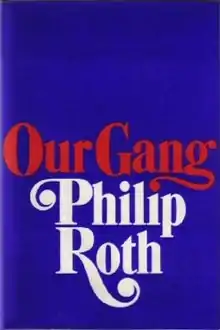 Our Gang (1971) is Philip Roth's fifth novel. A marked departure from his previous book, the popular Portnoy's Complaint, Our Gang is a political satire written in the form of a closet drama. Centered on the character of "Trick E. Dixon", a caricature of then-President Richard Nixon, the book takes its cue from an actual quote from Nixon: