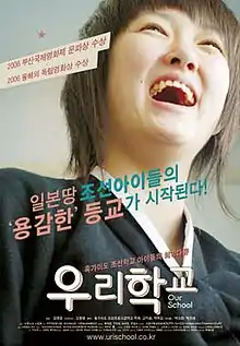 Our School (Korean: 우리학교; RR: Uri hakkyo) is a documentary film about the lives of ethnic Korean students in a Chongryon-run pro-North Korean high school in Hokkaido, Japan.[1] Released on 29 March 2007 (Sunday), a Hankook Ilbo article on 3 April stated it had already exceeded 10,000 viewers.[2] In the end, media reports claim it registered 85,000 or 90,000 viewer admissions in the South Korean domestic market, a far better performance than other recent documentaries such as the 2002 Yeongmae (영매, 20,000 viewers), the 2004 Repatriation (송환, 30,000 viewers) or the 2006 Bisang (비상, 40,000 viewers); it was suggested this might be a new domestic record.[3][4] Director Kim Myeong-joon received the Kim Yong-gun Memorial Society prize in relation to his work on the film.[4]