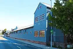 The Pacific Coast Railway Company Grain Warehouse is a warehouse building located at 65 Higuera St. in San Luis Obispo, California. The warehouse is the only surviving building from the Pacific Coast Railway's headquarters as well as the only extant grain storage building in San Luis Obispo. The date of the building's construction is uncertain; city records state that it was built in 1885, but it may have been rebuilt in 189293 after a fire. The wood frame building has corrugated iron paneling on its walls and roof, a typical design for contemporary storage buildings. The Pacific Coast Railway used the warehouse from its construction until the railway folded in 1942; the warehouse held grain grown in the region, which was at the time a major producer of grain and beans.[2]