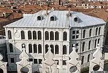 Due to the Venetian tradition that, when leaving their post, magistrates would leave a religiously themed painting and a portrait in their former office, the Palazzo dei Camerlenghi came to house numerous artworks.[3] Sometimes these paintings expressed social-political notions of civic virtue.[4] These were removed during the French occupation; some eventually returned to Venice, mostly to the Gallerie dell'Accademia.
