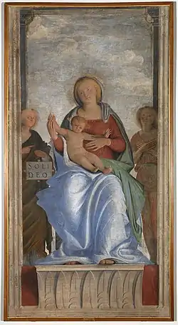 The Palazzo della Ragione Madonna is a fragment of a fresco of c.1509-1510 by Bramantino, originally on the façade of the Palazzo della Ragione, Milan, and now in the Pinacoteca di Brera in the same city. Due to a reference by Giovanni Paolo Lomazzo it was long misattributed to Bramante, until it entered its present home in 1808.[1]