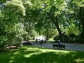 Parc Montsouris is one of the four large urban public parks, along with the Bois de Boulogne, the Bois de Vincennes and the Parc des Buttes Chaumont, created by Emperor Napoleon III and his prefect of the Seine, Georges-Eugène Haussmann, at each of the cardinal points of the compass around the city, in order to provide green space and recreation for the rapidly growing population of Paris.[1] The park is 15.5 hectares in area, designed as an English landscape garden by Jean-Charles Adolphe Alphand.[2]