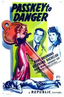 Passkey to Danger is a 1946 American film noir crime film directed by Lesley Selander and written by O'Leta Rhinehart and William Hagens. The film stars Kane Richmond, Stephanie Bachelor, Adele Mara, Gregory Gaye, Gerald Mohr and John Eldredge.[1][2][3] It was released on May 11, 1946 by Republic Pictures.