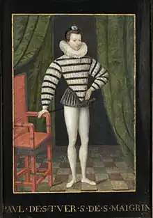 He was born in 1554, the second son of François de Stuer de Caussade, baron de Tonneins, Grateloup, Villeton, Montbrun, Puycorner et Saint-Mégrin, vicomte de Calvignac.[3] His mother was Gabrielle de Maillé de la Tourlandry. She had married François in 1538.[4] Paul inherited a large fortune from his father, who had accummulated valuable holdings.[5]