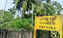 Payyoli railway station (code: PYOL) is a railway station in Kozhikode district, Kerala and falls under the Palakkad railway division of the Southern Railway zone, Indian Railways.