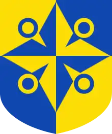 Quarterly Or and Azure a cross of four lozenges between as many annulets counterchanged.