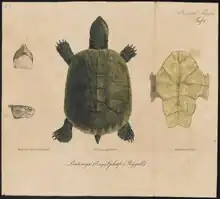 The Eritrean helmeted turtle (Pelomedusa gehafie), also known as the Eritrean side-neck turtle, is a species of Pelomedusa known only from Eritrea.[1] The species was first identified in 1835. It was declared extinct after not been seen for almost a century but some populations were rediscovered in 2016 in the streams of Damas river at Ghinda in the eastern coastal mountains.[2]