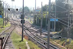 - track 4 is a running track of the Perugia–Terni line managed by the Rete Ferroviaria Italiana.