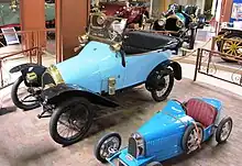 - ↑ Musée de l'Aventure Peugeot. The exhibit label (2012) states: «Bébé Peugeot : Bugatti, qui avait conçue ce petite voiture, proposa a Peugeot de lui en céder sa licence de fabrication. Les usines de Beaulieu commencent sa fabrication en 1913 et son succès fut tel...»