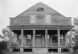 The house is a one-and-a-half-story gable-front house with dormers and elaborate woodwork, built on brick piers.[2][3] The gable end included a partial Palladian window, which had side windows and a rounded top window, but lacked an opening where the central window would go. The house was also unusual for having a lower-level room. The house's style is an adaptation of a Virginia style of home (or perhaps a specific Virginia house, presumably Waverly, house built in 1790 in Fauquier County, Virginia), modified to allow more ventilation needed in the Mississippi climate. The house has been modified somewhat from its historic form, including by adding a central window in the gable.[2]