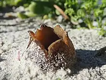 Peziza ammophila is a fungus in the cup fungus genus Peziza. It grows on sand dunes and beaches. As it gets older, it comes out from the sand and splits. It grows in winter and spring, and there are records from North America, Argentina, Chile, the UK, Europe, Australia and South Africa.[1] It is cup shaped. The Dutch call these Zandtulpjes, or "sand tulips."[2]
