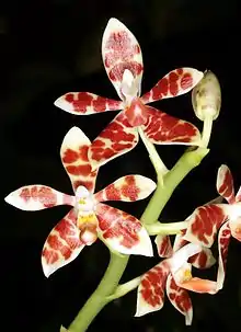 Phalaenopsis maculata is a species of orchid endemic to Peninsular Malaysia and Borneo.[1] The specific epithet maculata, from the Latin maculatus meaning "spotted", refers to the floral colouration.[2]