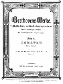 Cover of 1862 edition of Beethoven's first three piano sonatas (Breitkopf & Härtel)