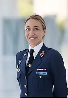 After a 20-year career, she was promoted to Comandante (equivalent to major) and was commissioned to direct ECAO Madrid, thus returning to her first posting.[5][6][7] On 2 August 2017, she became the first woman to take command of a unit in the Spanish Air Force. She took command of the headquarters of ECAO Madrid at a ceremony held at Torrejón Air Base. The ceremony was chaired by General Rafael García Hernández, Chief of the Command and Control System, and attended by military and civil authorities, including the heads of the units located at the base and the director of the Central-North Region of ENAIRE. This historical event was picked up in the media and social networks, receiving congratulations from, among other people and institutions, the Minister of Defense, María Dolores de Cospedal.[1][3]