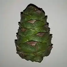 - Immature Pinus pumila × P. sibirica cone from a Pinus pumila (from National Botanic Garden of Latvia)