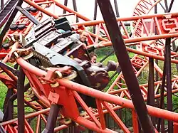 Wipeout 2007 Vekoma Boomerang Relocated from the closed American Adventure, where it was known as 'Missile'. The region's biggest roller coaster. Height limit 1.3m. Riders are taken backwards 34m in the air, and then released to reach speeds of up to 50 mph. After going through 3 inversions, the process repeats in reverse.