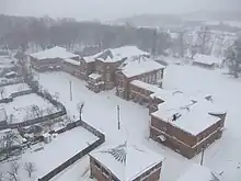 A view of the Nechaev Palace from the Shukhov tower in winter