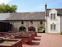 The house was a two-storey structure in the Scots Baronial style. The exterior was the result of rebuilding and extensions in 1822, 1878 and 1912, although with the 17th-century mansion of the Baillies at its core.[3] It was demolished in the 1960s, although the block of stables and offices survives. This included stable staff accommodation, stables, tack room, horse-driven mill, fodder store and carriages accommodation, arranged around a courtyard. Three of the original staff dwelling houses remain part of this block and are occupied to this day. The NCB however retained ownership of one of the dwelling houses when the estate was sold to the Council. The only other part of the park not owned by the Council is the area around the Baillie family mausoleum. The house was located at grid reference NS92476494.[3]