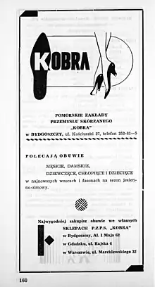 - ↑ "POMORSKIE ZAKŁADY PRZEMYSŁU SKÓRZANEGO "KOBRA" W BYDGOSZCZY". rejestr.io. Fundacja ePaństwo. 2006. Retrieved 11 March 2021.