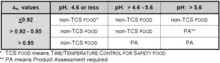 • A FOOD that because of its pH or AW value, or interaction of AW and pH values, is designated as a non-TCS FOOD in Table A or B of this definition;