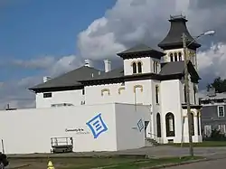 Pratt House is a historic home located at Elmira, Chemung County, New York. It is a large scale brick dwelling in the Italianate style. It has a cross-gable plan and features two asymmetrical towers, a projecting polygonal bay, and a stepped back, Arts and Crafts style north wing. The lower tower has a pyramidal roof and the taller tower a bell cast roof embellished with cresting. It was originally located on Union Place, but moved to its present location in 1872 when it was extensively remodeled to its present appearance. The rear wing was added in the 1920s when it was home to the Elmira Eagles Aerie 941.[2]